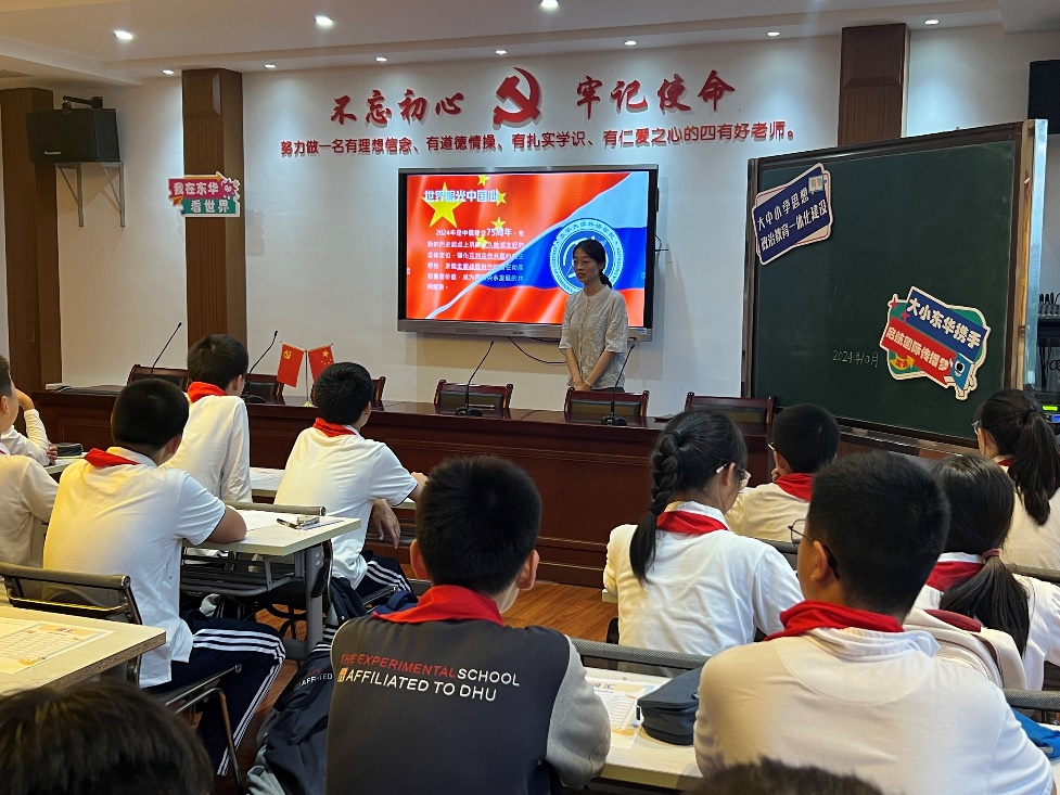 为深入学习贯彻落实党的二十届三中全会精神和全国教育大会作出的重要指示精神,bat365在线平台官网登录携手bat·365在线登录入口附属实验学校,于秋季学期持续推进《我在东华看世界》“大思政”国际传播系列课程建设。近日,由bat365在线平台官网登录研究生第一党支部成员刘金主讲的秋季学期首次课程《联合国常任理事国——“世界加油站”俄罗斯》于东华附校成功举行,bat·365在线登录入口发展联络处外派东华附校发展处主任严晨、bat·365在线登录入口附属实验学校研训处副主任刘恋、bat365在线平台官网登录专职辅导员朱如超及bat365在线平台官网登录学生党员代表全程参加活动。